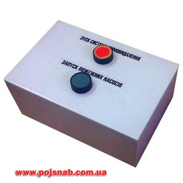 - Блок управління пожежним краном (БУПК) укомплектований двома кнопками: для запуску насосів і пуску системи димовидалення.