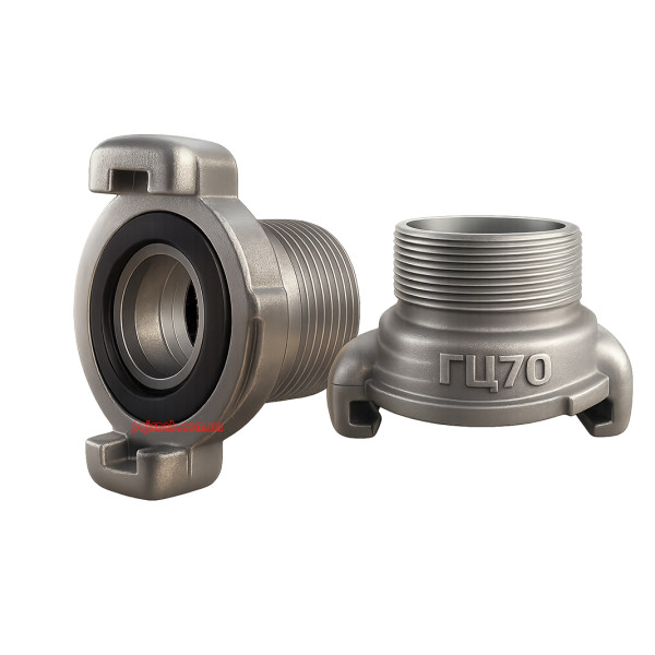 Цапкова ГЦ70 сполучна головка складається з: втулка із зовнішнім різьбленням і канавкою для ущільнюючого кільця на торцевій крайці; два ікла зі спіральними похилими майданчиками на зовнішній поверхні втулки. Цапкові головки ГЦ70 виготовляють з алюмінієвого сплаву. Призначені для швидкого. міцного і герметичного з'єднання пожежних рукавів як між собою, так і з різним пожежним обладнанням