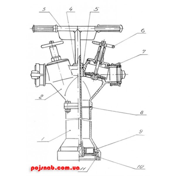 Підключальний вузол — має два виходи з головками ГР-70 для приєднання двох пожежних рукавів (рукав пожежний).