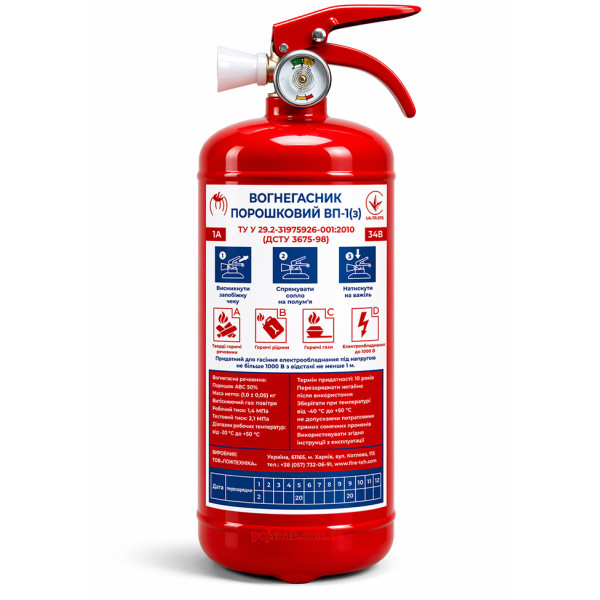 Це переносний порошковий вогнегасник із зарядом 1 кг, призначений для ліквідації початкових осередків займання.